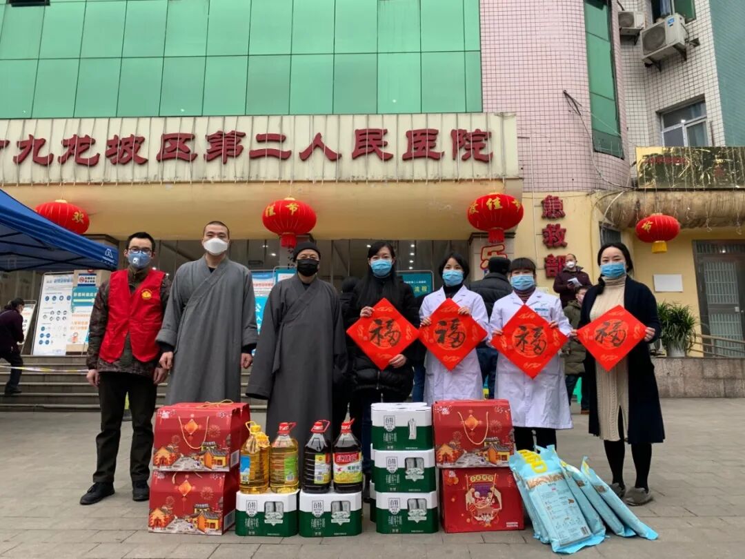 四是凝心聚力,积极组织捐款捐物助力疫情防控。这次新冠肺炎疫情,是新中国成立以来在我国发生的传播速度最快、感染范围最广、防控难度最大的一次重大突发公共卫生事件。针对口罩、消毒液等疫情防控物资一度告急,华岩寺利用各种资源,经多方协调与筹措,从海外筹得一批医疗物资捐赠给九龙坡一线及基层防疫单位。1月28日,华岩寺文教基金会向重庆市民政局报备并在民政部“慈善中国”网站备案,开始在网络平台公开、定向募集善款,同时发布公告,号召有条件的单位和个人捐赠N95口罩、医用防护服、护目镜、防护面罩等疫情防控物资。2月17日晚,重庆陈家坪两小区突然停电,受疫情影响,蜡烛等应急物资严重不足,华岩寺接到求助后,迅速将寺内库存的4000多只祈福所用蜡烛免费配送给居民使用,不仅送去了光明,也送去了温暖和希望。2月18日,在了解到武汉疫区蔬菜等生活物资短缺的情况后,华岩寺积极协调,先后筹集2批次60多吨蔬菜捐赠武汉疫区。为进一步加强湖北疫区资助救援工作,华岩文教基金会动员湖北疫区社会力量,召集一线志愿者组成“华岩寺湖北义工团”,道坚法师利用线上线下统一指挥、统一采购、统一调度,点对点支持湖北省武汉市、黄冈市、孝感市等20多家疫区医院和医疗机构紧急送去所需生活物资。2月20日,华岩寺发起关爱抗疫一线医护人员家庭行动,走访慰问驰援湖北一线的医护人员家庭,并送上“医护家庭关爱包”、大米、菜油和“福”字,祝福大家都能平安健康,为前方医护人员提供坚强后盾。此外,华岩寺、华岩文教基金会还多次筹集疫情防控物资及生活物资,捐赠重庆本地一线医院、执勤人员、环卫工人、困难群众。据不完全统计,华岩寺已累计捐款捐物(价值)100余万元。