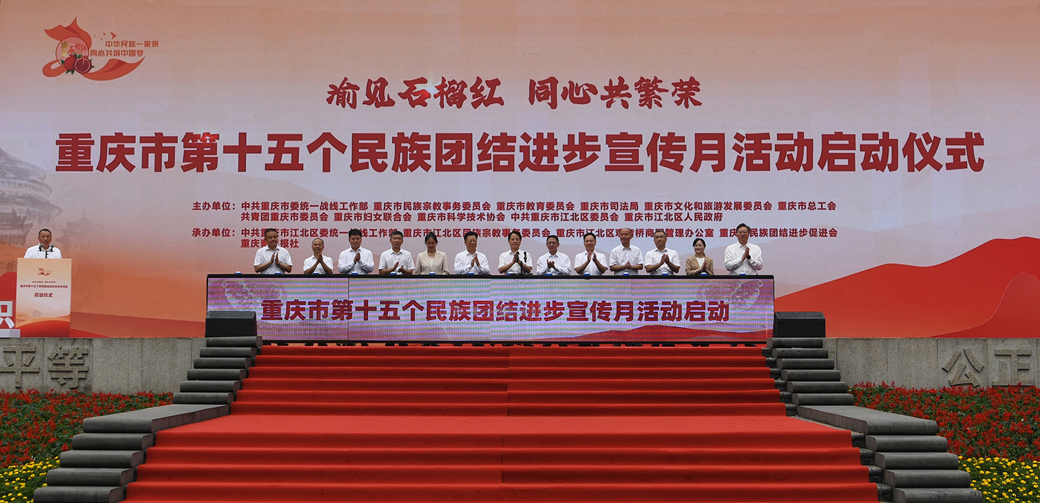 本次宣传月活动启动仪式由市委统战部、市民族宗教委、市教委、市司法局、市文化旅游委、市总工会、团市委、市妇联、市科协、江北区委、江北区政府联合主办,旨在深入宣传贯彻习近平总书记关于加强和改进民族工作的重要思想,巩固和发展平等团结互助和谐的社会主义民族关系,凝聚全市各族人民的智慧和力量,共同谱写重庆民族团结进步事业新篇章。
