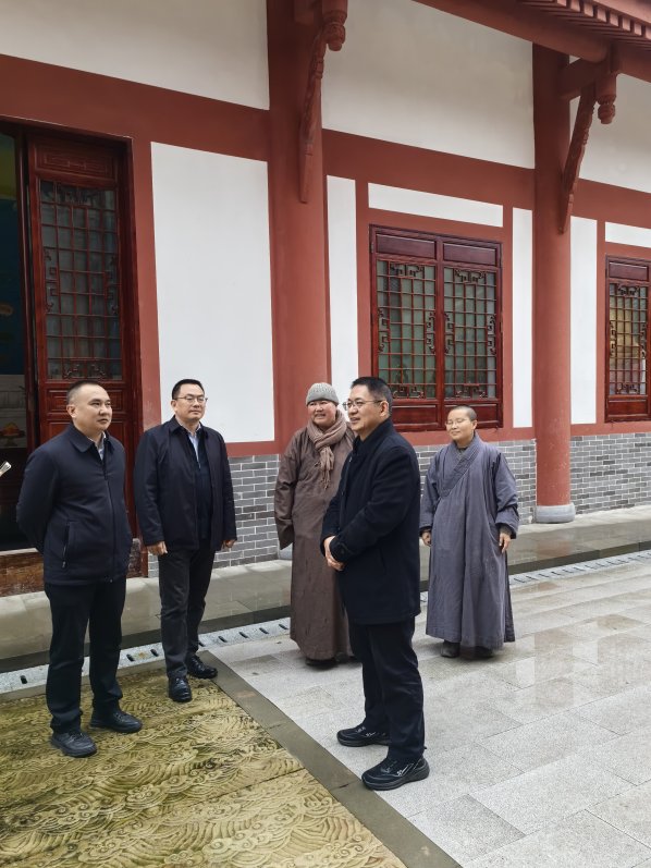 2025年12月31日,市委统战部副部长(兼)、市民族宗教委党组书记、主任程伟赴沙坪坝区调研检查宗教活动场所元旦节安全稳定工作,市民族宗教委党组成员、副主任周先常,沙坪坝区委常委、统战部部长谭顺清等陪同调研。程伟一行先后深入飞雪寺、古书山道观,实地调研检查场所消防等安全设施设备情况,以及推进我国宗教中国化实践等有关情况。