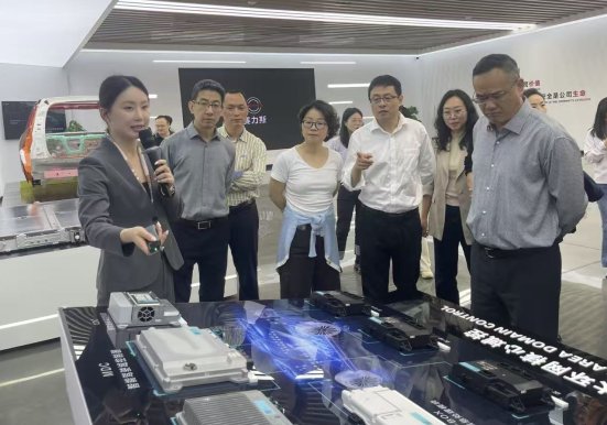 在展厅参观中,青年小组了解了赛力斯超级汽车工厂的发展历程,参观白车身、电池包、控制器、电驱、增程器等核心零部件,实地静态体验赛力斯和华为联合设计的问界M9、M8、M6车辆,切身感受新时代科技创新和产业升级的澎湃动能,深刻体会到其坚持创新驱动、深化跨界融合、勇攀科技高峰的奋斗精神。